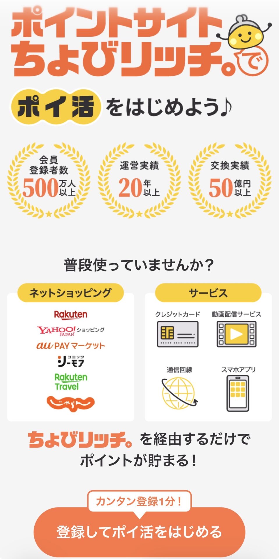 ちょびリッチは、長年の運営実績を持つ老舗ポイントサイトで