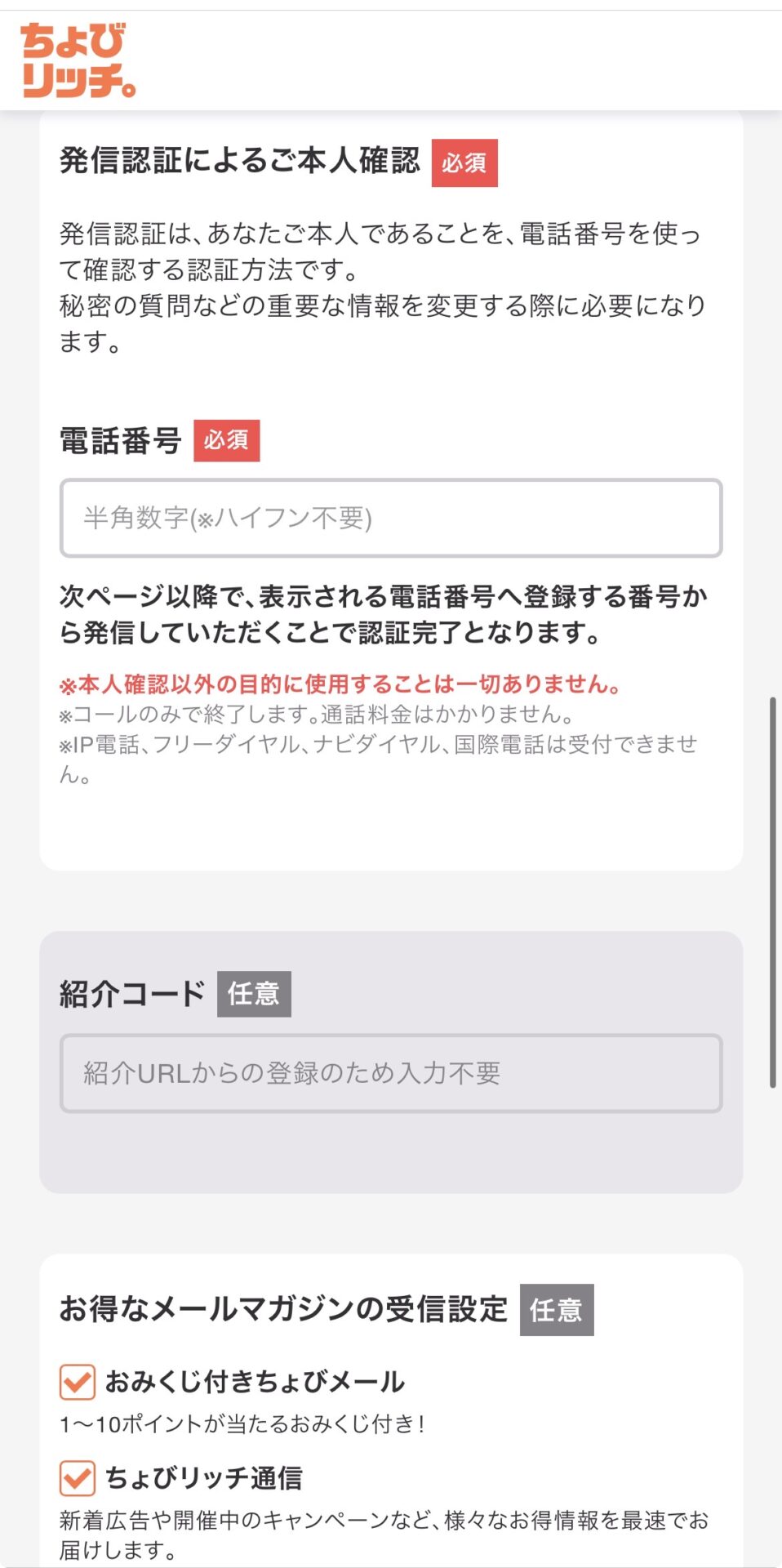 ちょびリッチの登録方法について説明します