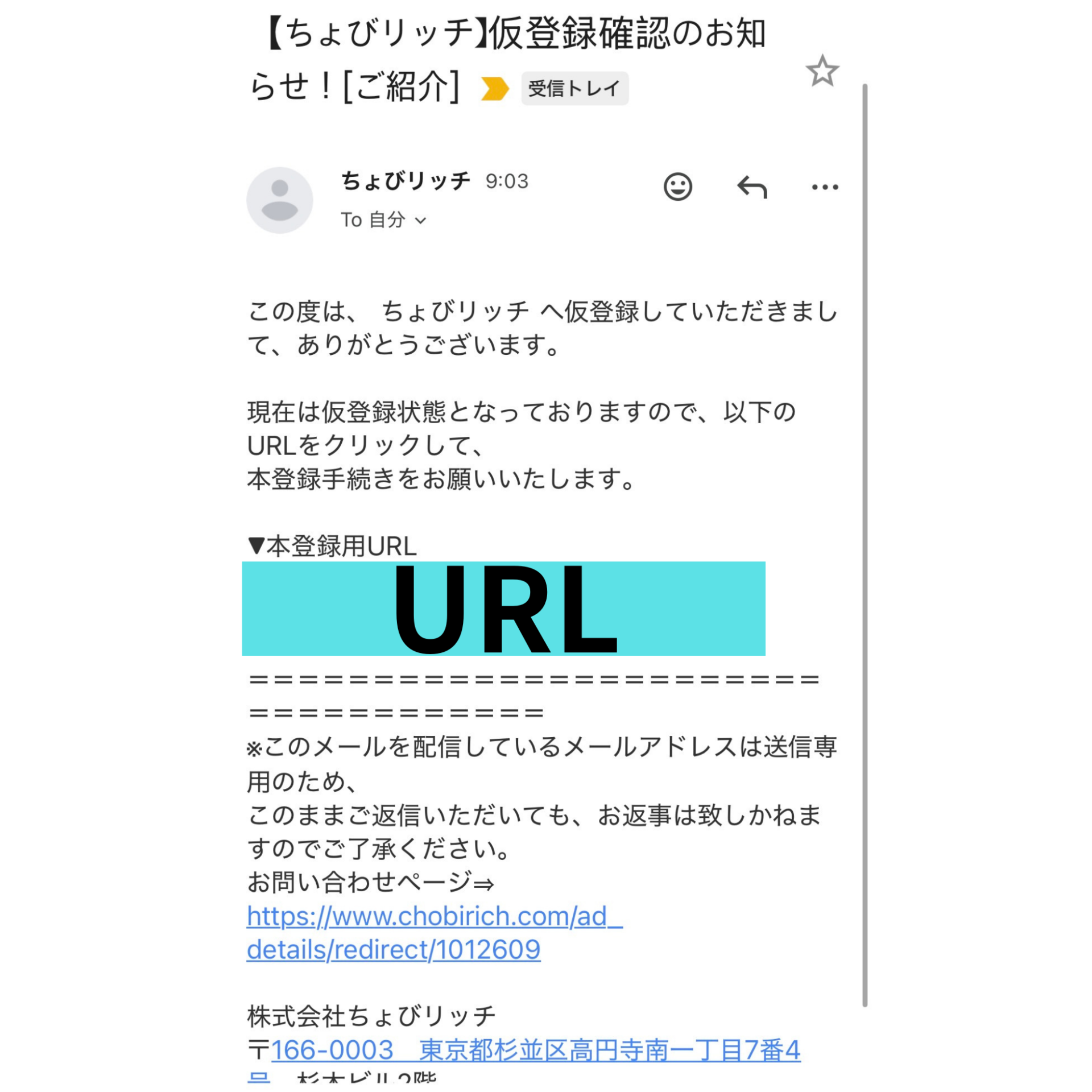 このようなメールが届いていれば登録完了です!