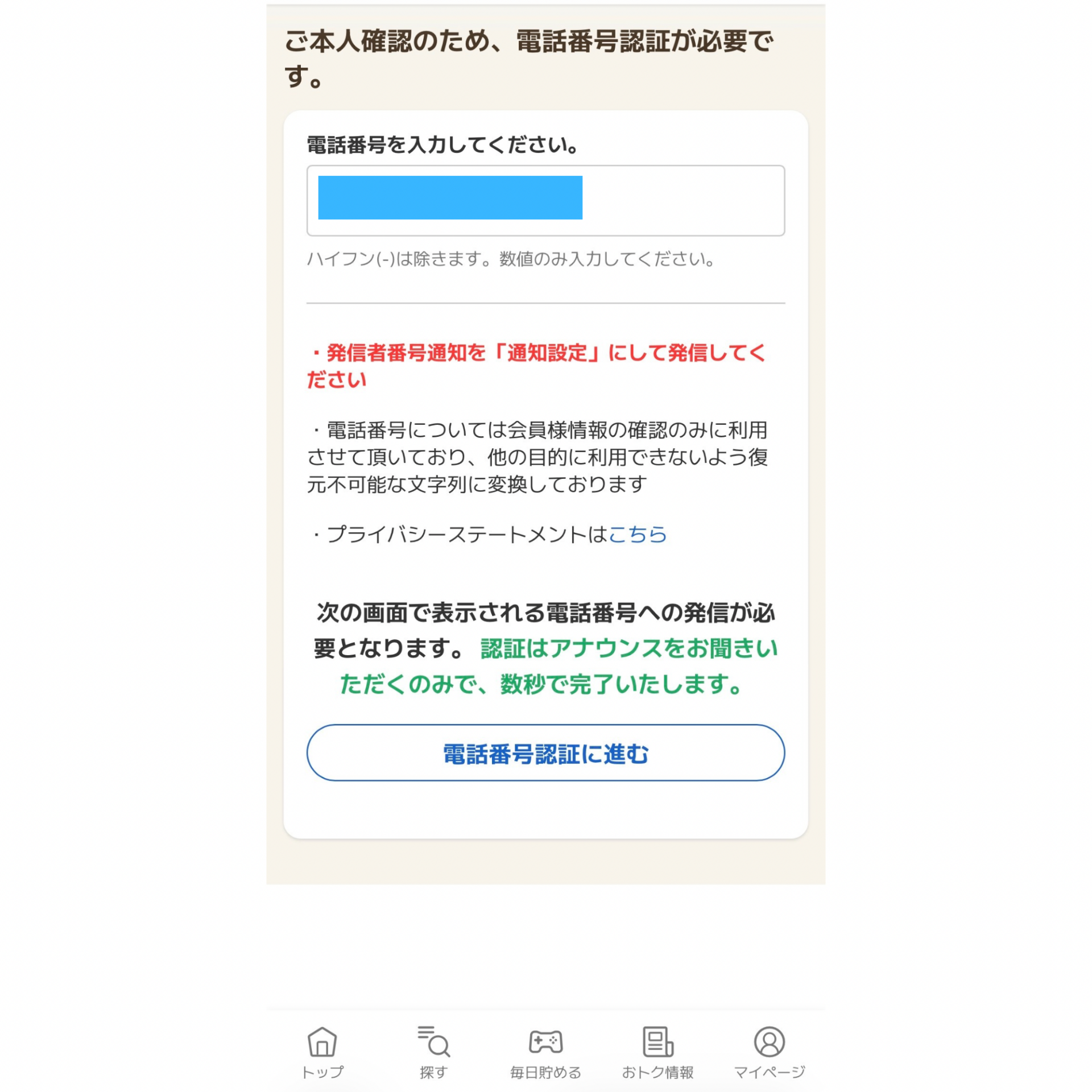 電話認証で登録完了